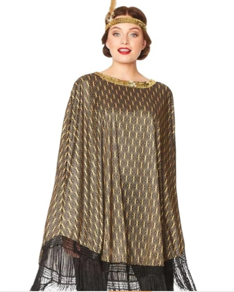 Includes – open poncho with frills and headpiece –