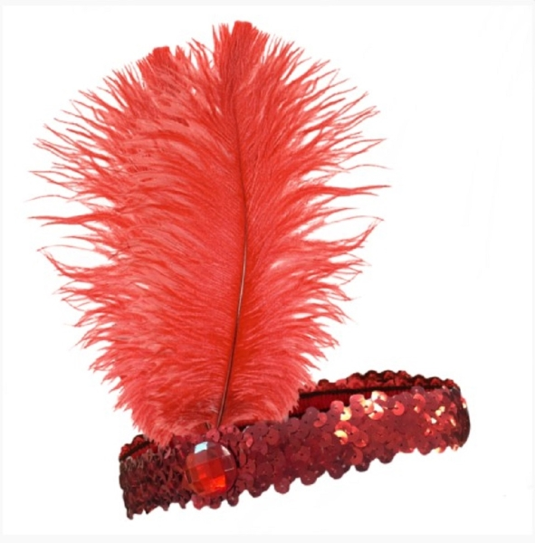 Includes – sequined headband with feathers –