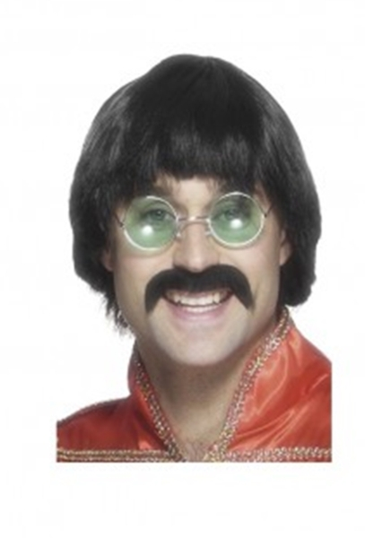 Includes short black wig with moustache –