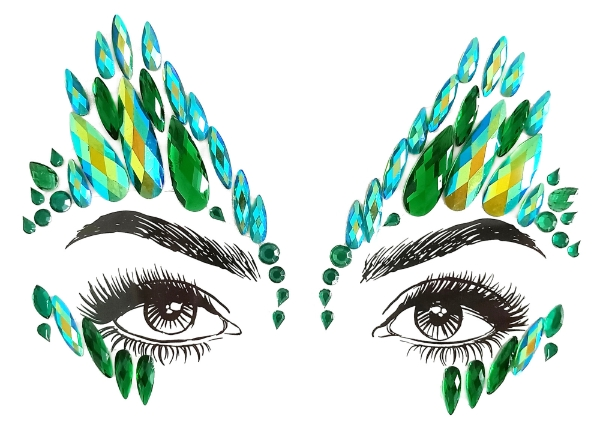 Includes one set of reusable face jewels simply peel and stick can be re