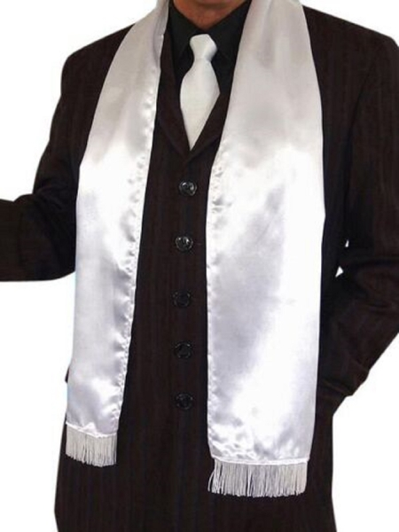 Includes White Satin Long Fringed Scarf,Length is 130cm.