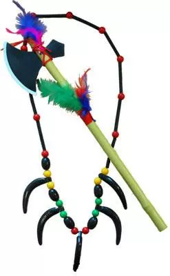 Includes neacklace with fake teeth and tomahawk –