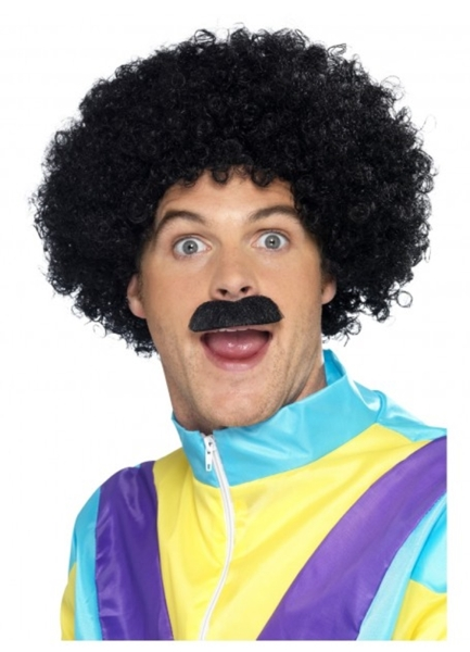 Includes – black curly wig & tash not included shirt –
